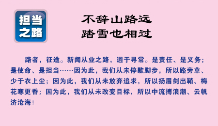 因为喜欢,所以热爱;因为神圣,所以敬畏。任何时候,都要牢记新闻工作者的职责和使命,站在时代和社会的前沿。