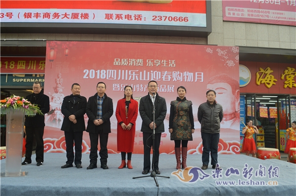 bte365娱乐场讯(记者 徐梓胜)聚焦“乐山造”精品,塑造乐山品牌,营造节日消费气氛。12月30日上午,由乐山市人民政府主办的“2018四川乐山迎春购物月暨乐山特产商品展”活动启动仪式在中心城区举行。副市长周伦斌出席启动仪式。