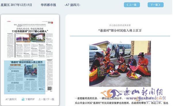 12月15日,华西都市报在A7版《读四川》专栏刊发通讯《乐山励志扶贫成果显著 “悬崖村”部分村民收入将上百万》,以金口河区“悬崖村”村民吴朝安发家致富为例,讲述了乐山通过开展“感恩奋进·我的脱贫路”主题活动,实施分段奖励计划、青少年教育促进计划,治理高聘金高礼金等工作,在脱贫攻坚中所取得的显著成果。新华网、四川在线等媒体纷纷转载,对我市励志扶贫工作成效做了进一步宣传,传播脱贫路上的“好声音”。