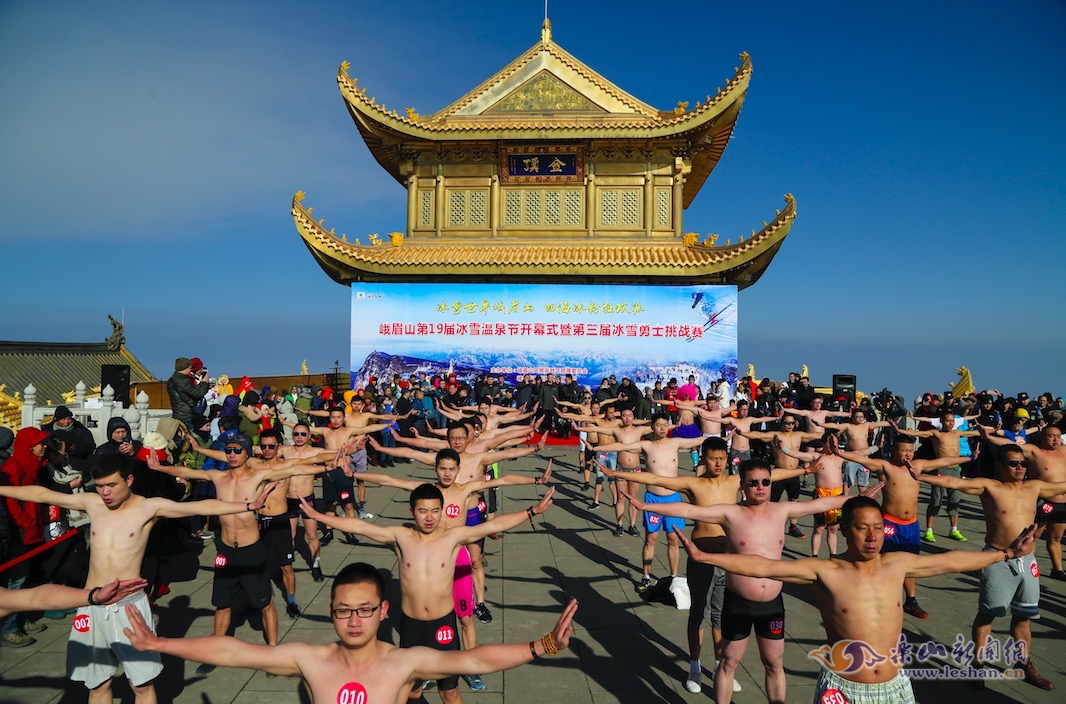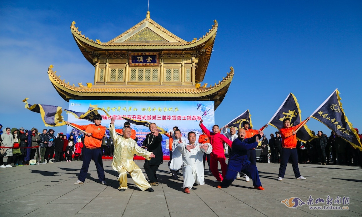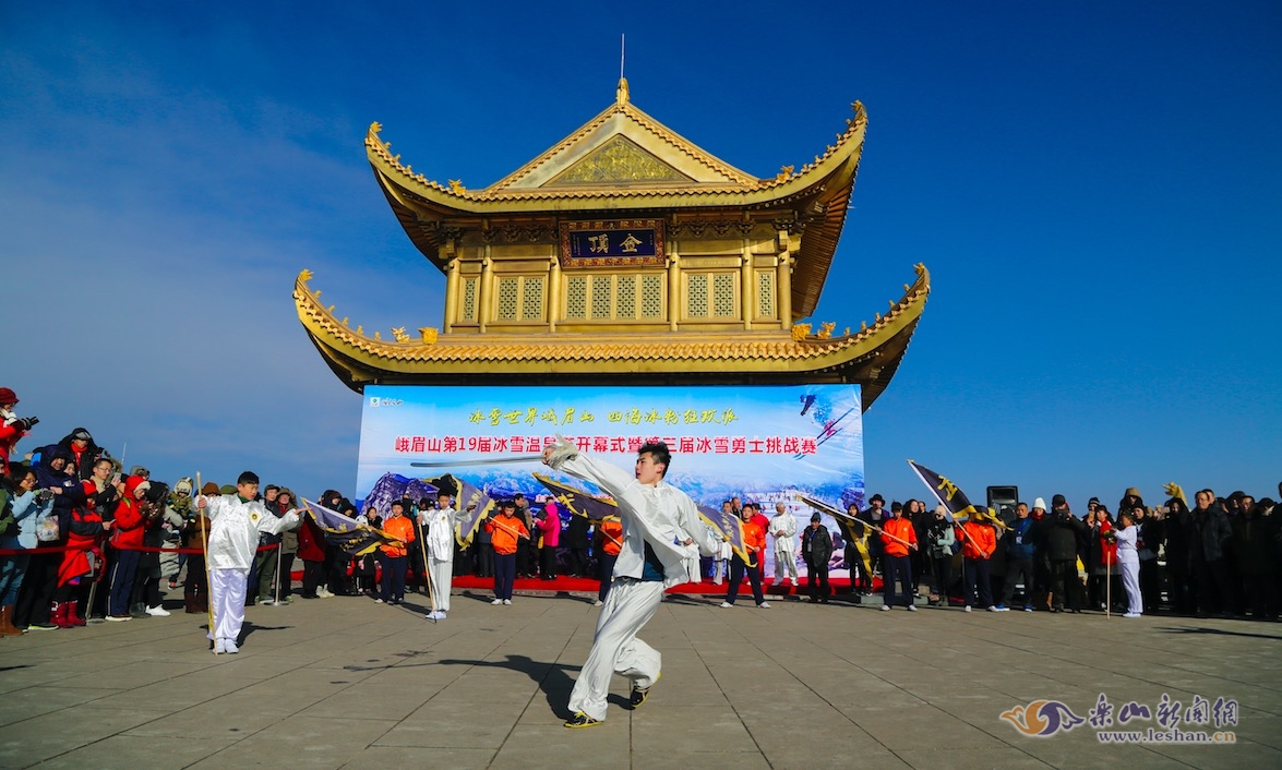 当天的开幕式上,峨眉派武术高手“峨眉七雄”带领弟子进行了精彩的峨眉功夫表演。备受瞩目的“冰雪勇士挑战赛”如期上演,吸引了大量游客慕名前来“观战”,大家欢聚在风景奇秀的峨眉山金顶,共同感受南国冰雪的神韵与魅惑。