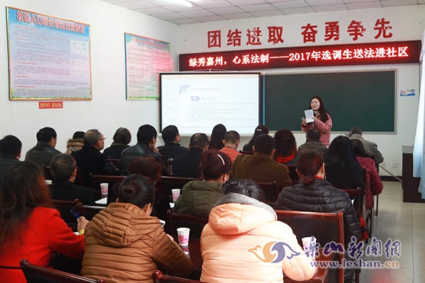 bte365娱乐场讯(记者 陈阳路)为切实推动绿心保护工作,增强广大市民的法制意识和环保意识,9日,由市委组织部、市人大联合组织的“绿秀嘉州,心系法制”2017年选调生送法进社区活动在中心城区张公桥街道圣水社区举行。来自我市的近10名选调生走进社区,对群众关心的《乐山市中心城区绿心保护条例》(以下简称《条例》)进行宣传讲解,受到了市民的踊跃参与。