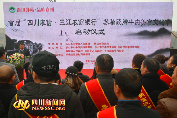 四川新闻网乐山12月30日讯(黄凯 文/图)12月29日,首届“四川农信·三江农商银行”跷脚牛肉美食文化节在跷脚牛肉发源地乐山市市中区苏稽镇举行。