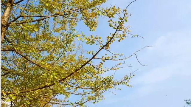 滟澜洲和嘉州新城河边的银杏已经黄了