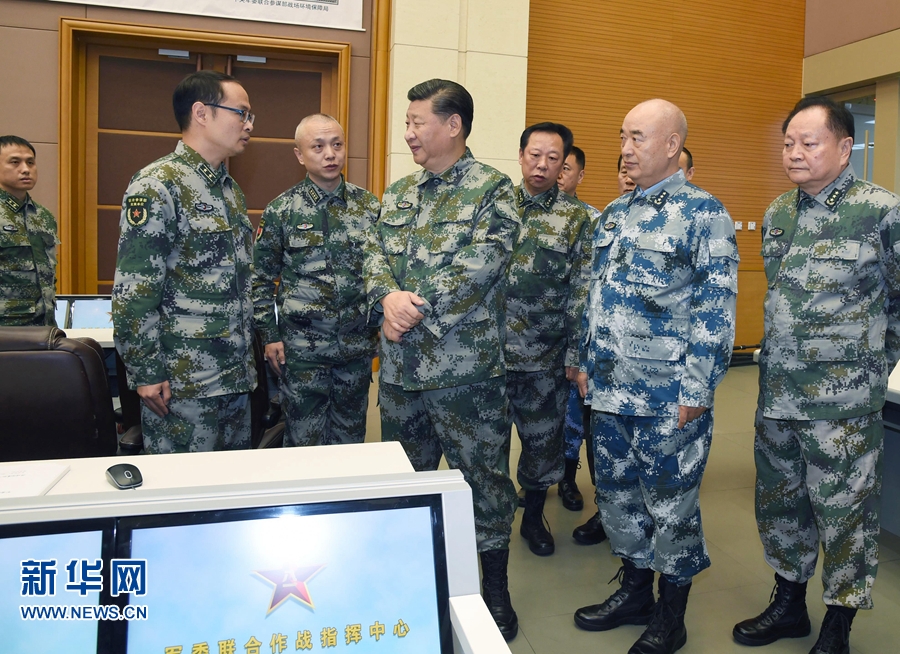上午9时30分许,习近平一身戎装来到军委联指中心大楼。他带领军委一班人研究军委联指中心建设情况。习近平指出,军队是要准备打仗的,军委必须懂打仗、善谋略、会指挥,军委工作一开始就要把备战打仗的指挥棒立起来。今天到军委联指中心来,就是要亮明态度,从我做起,从军委做起,强化备战打仗导向,提高打赢本领,抓实备战工作,带领我军真正做到能打仗、打胜仗,担当起党和人民赋予的新时代使命任务。