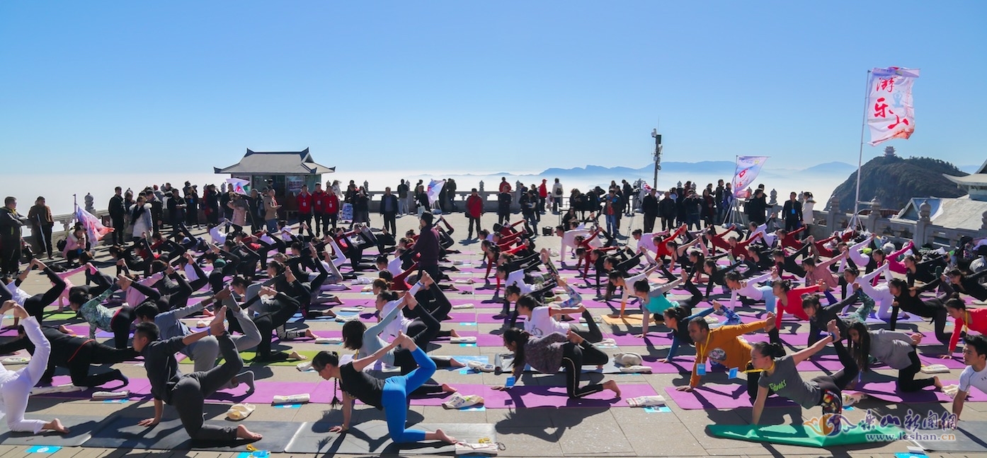 当天的峨眉山金顶暖阳高照,一望无垠的云海飞瀑与远处清晰可见的贡嘎雪山连成一片,宛若人间仙境。伴随着轻柔的音乐,百名中外瑜伽爱好者在瑜伽大师的指引下共展身姿、翩翩起舞,共同体味着高海拔、高“颜值”冰雪瑜伽的独特韵味。
