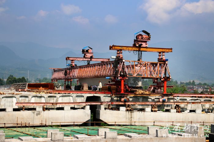 上午10时,在成昆铁路扩能工程胜利镇段,该项目穿峨眉河大桥连续梁顺利合龙,峨眉河南边铁路轨道已经铺设完成,峨眉河北边路基已经形成;