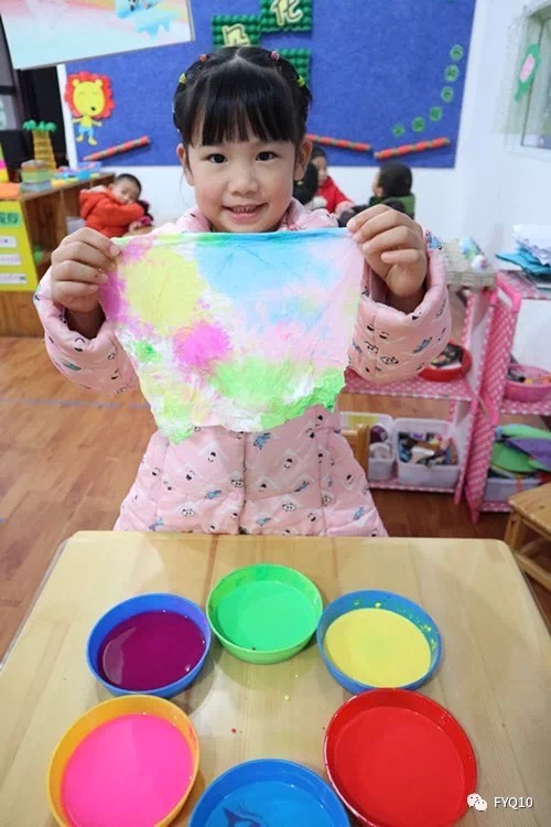 第一步,将卫生纸轻揉成团,第二步,选择自己喜欢的颜色进行扎染,第三步,轻轻地、慢慢地将卫生纸打开,快看,漂亮的扎染纸手帕就完成啦,你们是不是也想试试呢?