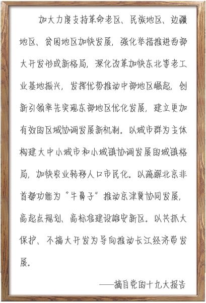 党的十八大以来,以习近平同志为核心的党中央提出并推进“一带一路”建设、京津冀协同发展和长江经济带发展,在区域协调发展方面作出了一系列重要决策,采取了一系列重大创新性举措,谱写了我国区域协调发展崭新篇章。一是“一带一路”建设进度和成果超出预期,京津冀协同发展取得重大进展,雄安新区启动设立,长江经济带发展顺利推进。我国“四大板块”区域发展总体战略深入实施,区域政策不断创新,协调机制加快完善。二是“一带一路”建设、京津冀协同发展、长江经济带发展与“四大板块”区域协调发展叠加效应显现,沿江、沿路形成一批新的增长极和增长带。但也要看到,我国区域发展差距依然较大,一些中西部地区和贫困地区基础设施和公共服务设施仍然较差,公共服务还有较大差距。近年来,区域协调发展又面临不少新情况新问题,特别是一些地区人才储备和技术支撑缺口较大、新动能培育相对较慢,一些资源型省份产业转型困难,地区发展态势有所分化。应该按照党的十九大的新部署,加快实施以下重点任务和举措。
