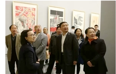 省委宣传部副部长陈华,省文联主席郑晓幸,省文联党组书记、常务副主席平志英,省文联党组副书记刘建刚,四川大学校长谢和平,省政府原副秘书长王七章,省美协主席、四川美术馆名誉馆长阿鸽,以及省美协、省书协、省摄协和省文联机关负责同志出席了开幕式。本次展览展出的70余件国画作品,90余件油画及其它类别美术作品,80余件书法作品和100件摄影作品,均是向全省公开征集、评选出的优秀原创作品,展示了四川近五年来的政治、经济、文化生态建设成就。全域旅游、脱贫攻坚、环境治理、美丽乡村、特色小镇、民族团结、文化进步、民生幸福、社会和谐、核心价值观、中国梦等主题内容,真实而生动地再现了党的十八大以来四川发展的新面貌和自然人文新气象。抒发了我省广大文艺家讴歌祖国的真情实感,以及对祖国发展愿景的美好向往。