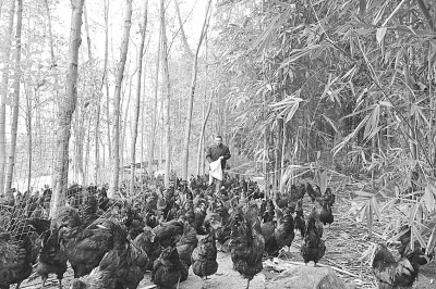 与此同时,黄世海还和一些扶贫帮扶单位进行了合作,扶贫单位出钱为贫困户购买峨眉黑鸡鸡苗,黄世海在鸡长大后统一回收。