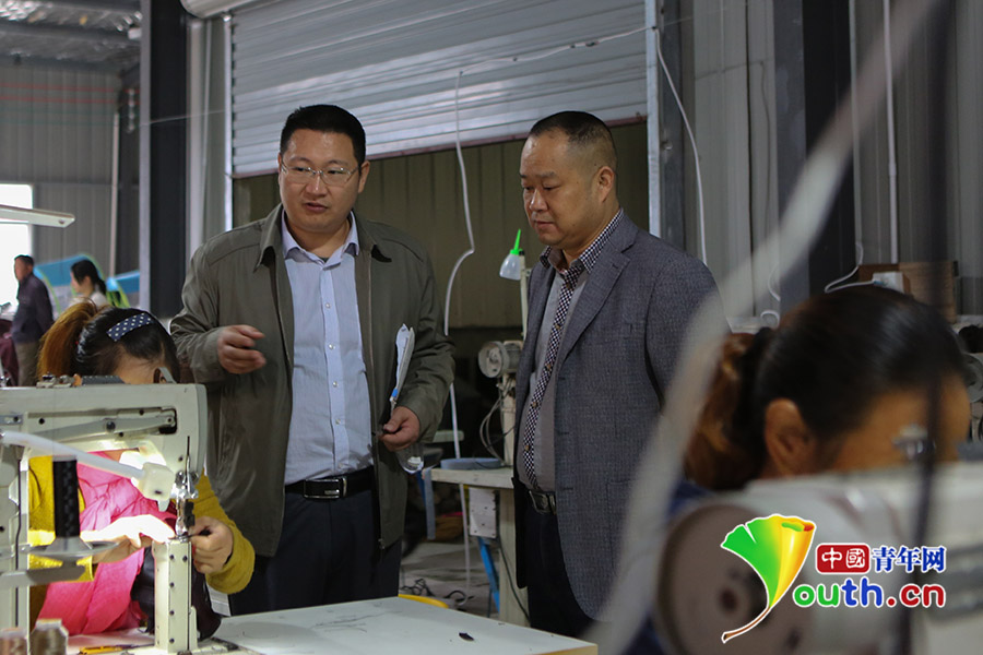 李朝阳在村扶贫车间了解生产和经营状况。受访者供图