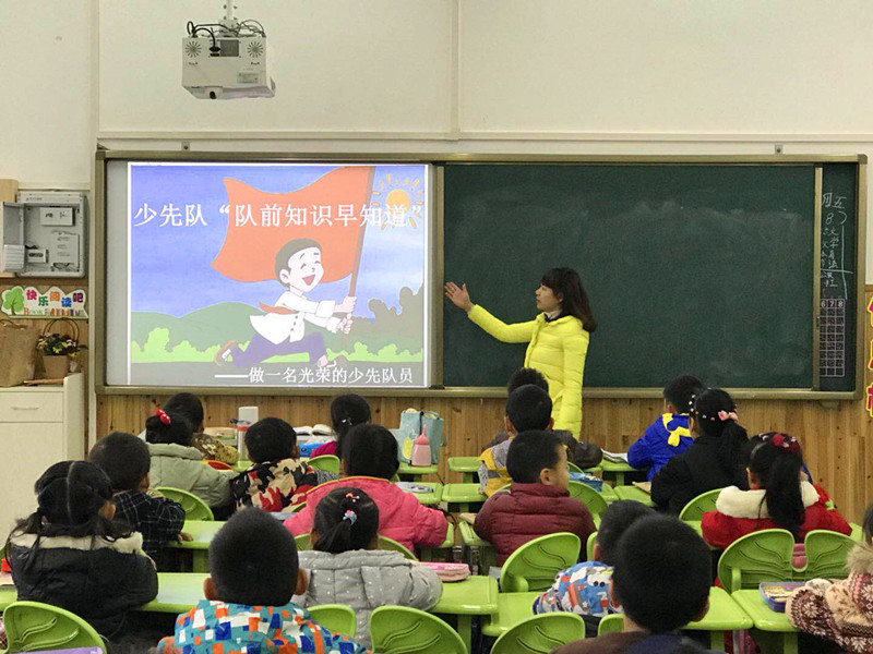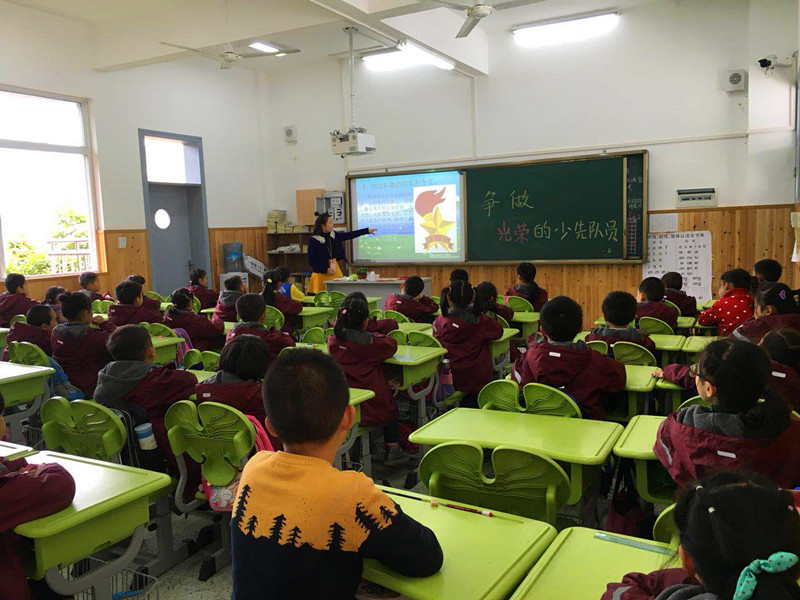 各班辅导员结合短片内容进行有关少先队知识的讲解, 新队员们学习了少先队党章,了解了我们的队名、队旗、标志、队礼、领导者、作风、呼号等内容。在老师的详细讲解下,新队员们听得格外专注,睁着求知的大眼睛,显得分外可爱。最后,在激昂旋律的伴奏下,新队员们学唱队歌。活动在新队员们稚嫩的歌声中走向尾声。