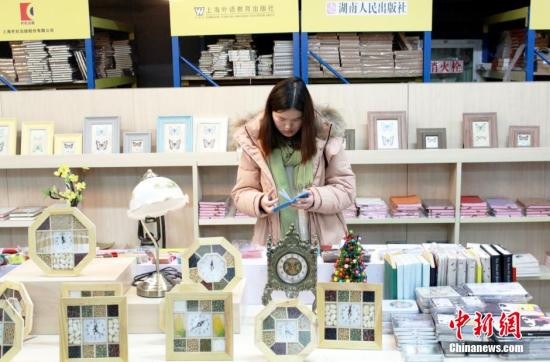 江苏南京,读者在先锋书店选购文化创意商品。 中新社发 安东 摄