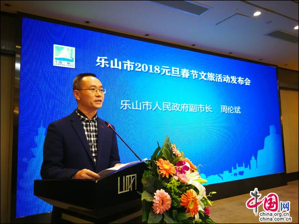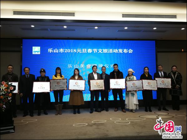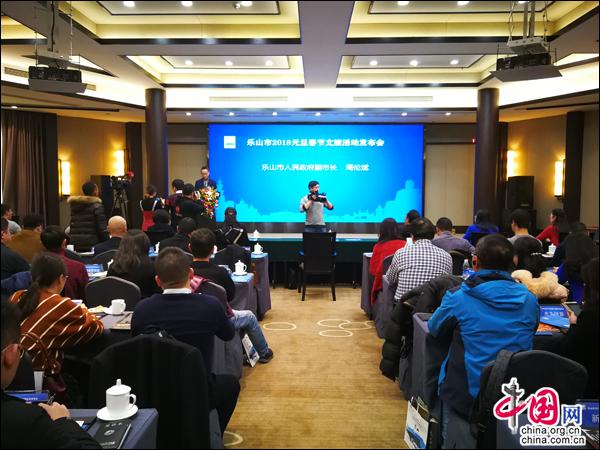 中国网12月26日讯 昨天, 美丽的蓉城,迎来了一缕嘉州的冬日暖阳。乐山市2018元旦春节文旅活动发布会在成都市峨眉雪芽大酒店举行。本次发布会以“山水佛地·灵秀乐山”为口号,通过互动推介、文创展示、美食品鉴、来宾交流等形式,向全世界游客吹响了来乐旅游的“集结号”。发布会展示了2017年12月至2018年3月期间,乐山在文化、商贸、旅游三大板块将要举办的主题活动,为国内外游客朋友们献上“冰雪雾松看嘉州”、“龙腾虎跃读嘉州”、“百花丛中赏嘉州”三幅美丽的嘉州画卷,让游客们在欣赏美景、体验美食的同时,细细品味绚丽嘉州的独特魅力。