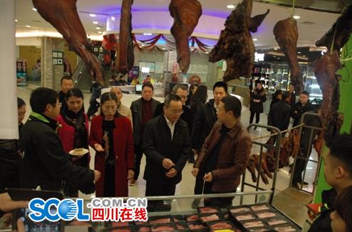 乐山市政府副市长周伦斌出席仪式,在市中区政府和市商务局、市城管局、市食品药品监督管理局等职能部门相关负责人的陪同下,对北京华联亚马逊店的购物情况进行了巡访了解。并宣布:“2018四川乐山迎春购物月暨乐山特产商品展”正式启动。