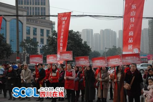 四川在线乐山讯(记者 余建军) 鼓舞声声贺元正,万物欣欣向阳中。12月30日,由乐山市人民政府主办,乐山市商务局、市中区人民政府承办的2018四川乐山迎春购物月暨乐山特产商品展在北京华联亚马逊店广场正式启动。现场展台上摆放的苏稽米花糖、沙琪玛、大头菜、香肠腊肉等乐山特产商品吸引了众多市民前来品鉴。