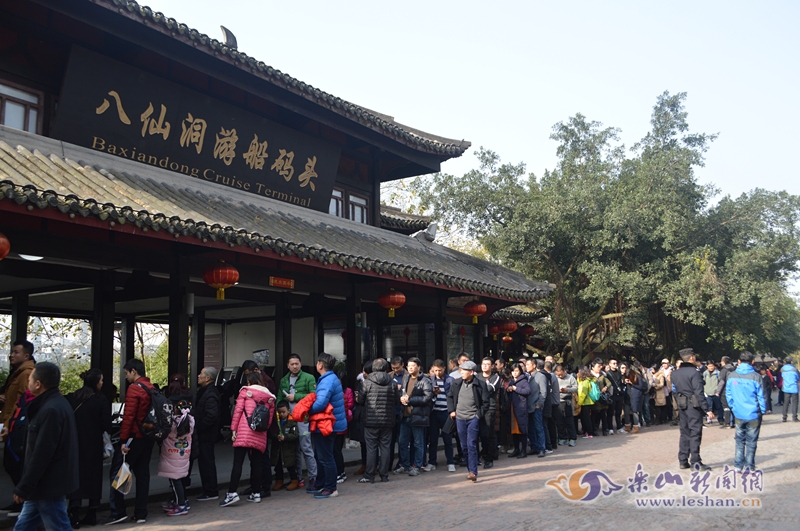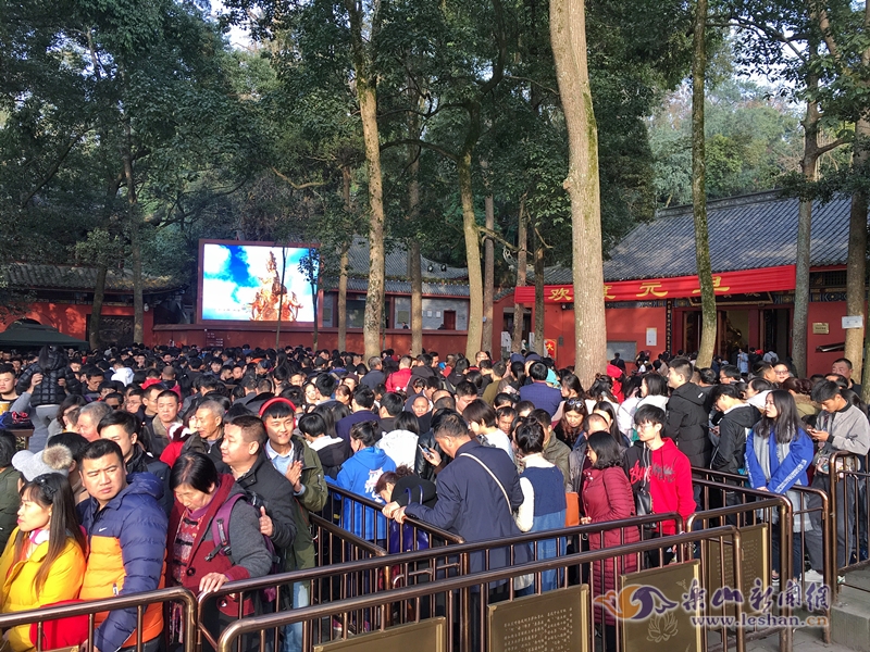 bte365娱乐场讯(记者 徐梓胜)2018年的第一天,乐山一改新年前两日的阴沉天气,取而代之的是艳阳高照、蓝天白云,气温全天维持在7℃-12℃之间,非常舒适宜人。虽然已是小长假的最后一天,乐山大佛景区人气依然不减,中午时分景区停车场几乎“满座”,来自乐山周边地区及成都的自驾车也不在少数。在大佛景区内,各个景点游人如织,排队等候下栈道观大佛的游客更是排起了“长龙”。