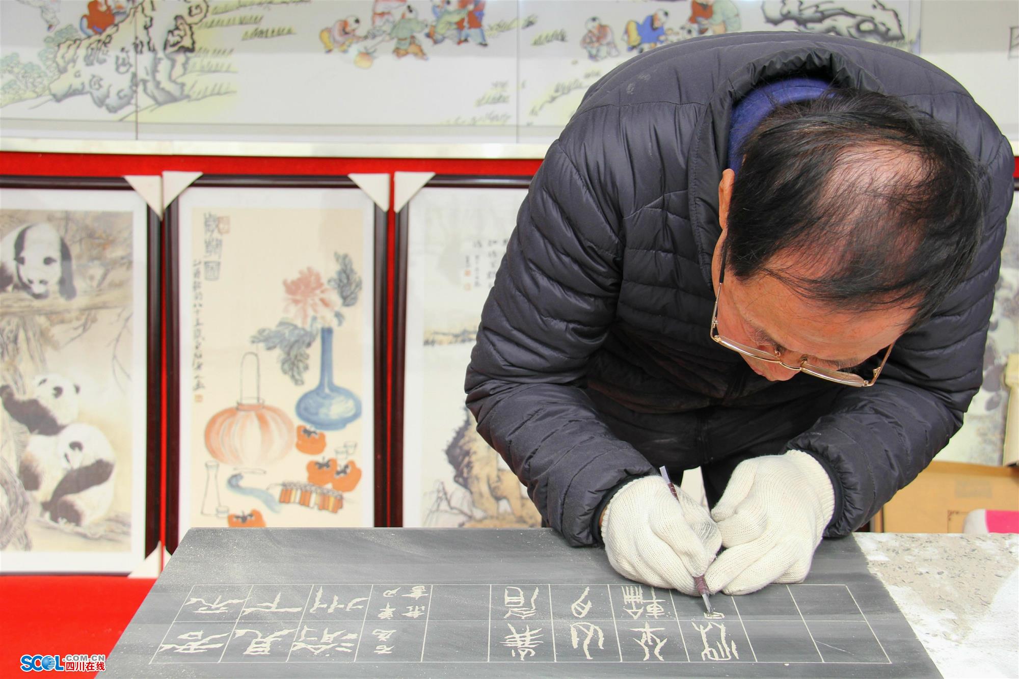 当瓷板遇到艺术,更是大放光彩。夹江县盛世东方陶瓷有限公司的展位上,书法篆刻家陈复澄以陶为纸,以刀为笔,正专心致志地拿着刻刀在瓷坯上进行书法篆刻。“峨眉山月半轮秋,影入平羌江水流。”脍炙人口的古诗篆刻在陶坯上,别有一番韵味。展位还有许多工艺精制,色彩明快的嘉州瓷艺(釉中彩)瓷板画。将图案绘于素坯上,施釉后经1200度高温烧制而成,图案晶莹细腻,历久弥新。