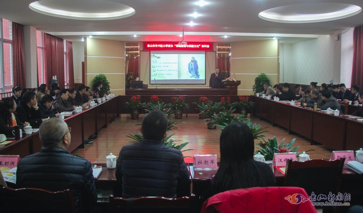 参观结束后,乐山市市中区小学校长“课程建设与校园文化”研讨会随即召开。乐山海棠实验中学校长余万超以“与海棠同行、做最好的自己”为题,向大家解读了海棠实验学校文化。作为原乐山市实验中学校长、乐山市第六届及第七届拔尖人才、四川省优秀校长、全国科研型优秀校长,余万超表示,将本着“教天地人事,育德智体美”的办学宗旨,“惠德灵智”的校训、“传道授业、博爱为尊”的师训、“德达天地、学贯中西”的生训,以人为本、国学为根,构建全网络大数据智慧校园,培育具有国学内涵、世界情怀的现代人,为乐山市中区教育事业发展作出新的贡献。
