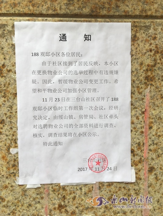 bte365娱乐场讯(记者 李举涛)最近,位于峨眉山市名山路的188官邸小区为更换物业之事闹得不可开交。不少业主认为,小区业委会未征求广大业主意见,擅自更换物业公司,并签订物业管理相关合同,损害了大家的利益。而小区业委会主任王先生则表示,更换物业公司系为了改善小区管理不善现状,所有变更事宜公开透明,程序合法合规,并无不妥。