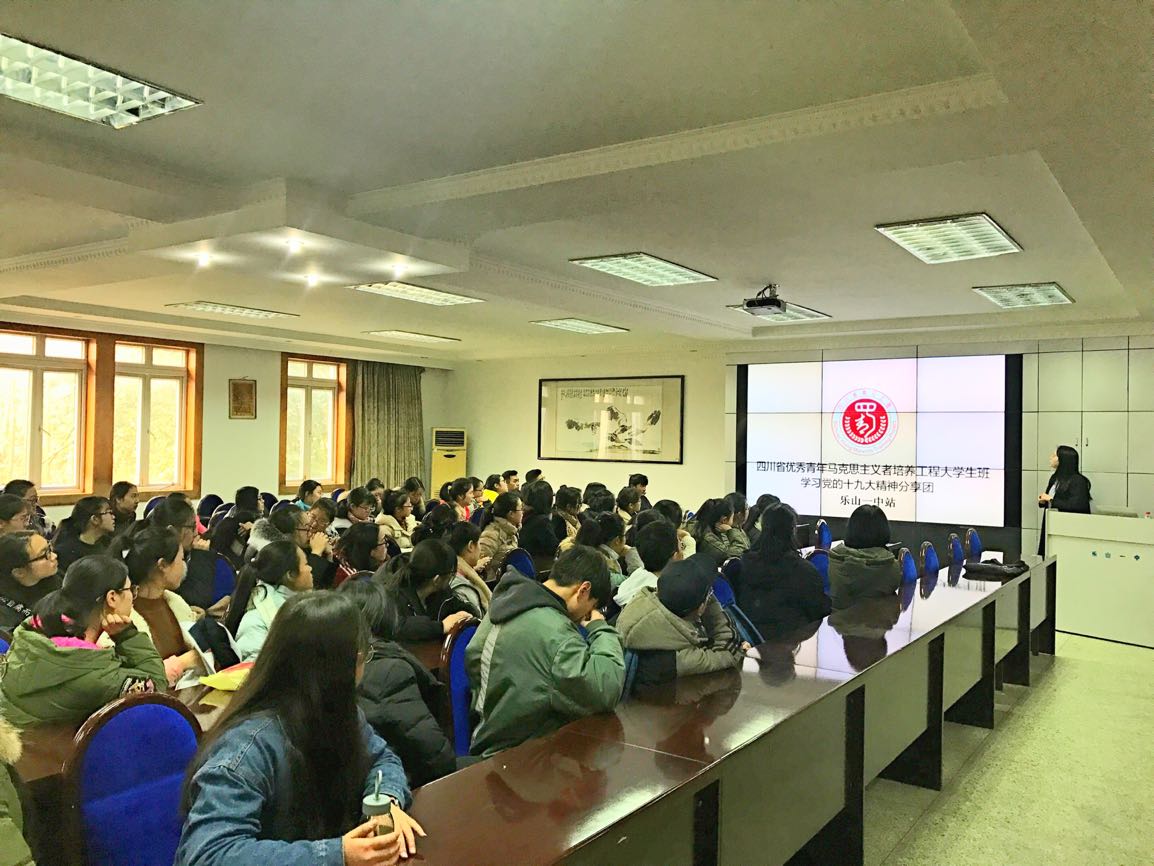 12月23日下午,“青马工程”校园行——学习党的十九大精神分享活动走进乐山一中,我校2012届校友罗美慧姊回到母校进行了宣讲,校团委组织了100余名团员学生参加本次活动。