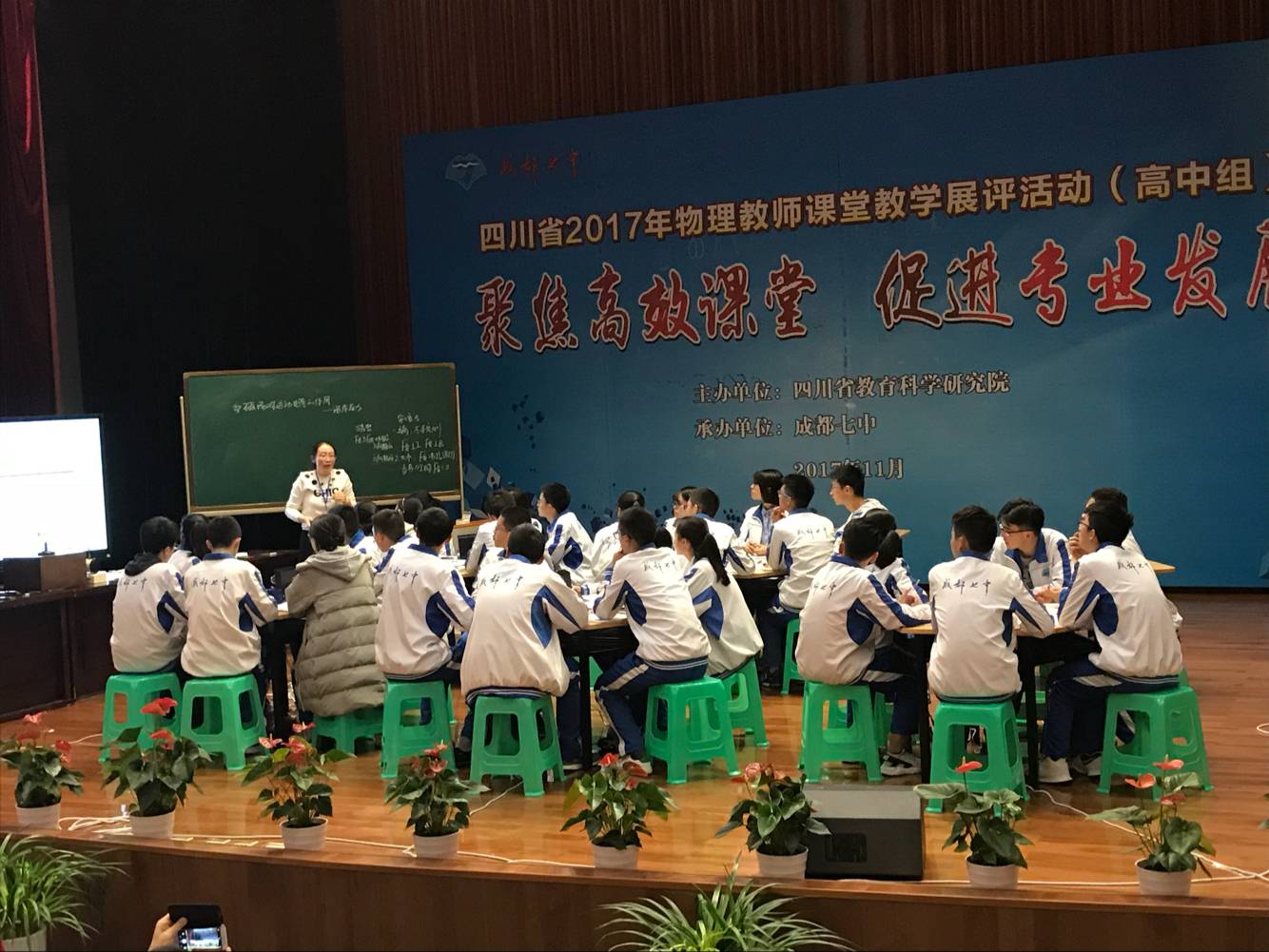 11月12—16日,四川省高中物理教师教学展评活动在成都七中高新校区举行。四川省教科所主任、四川师范大学及省内各地州的专家评委及省内物理教研员等300余人观摩了此次展评活动。