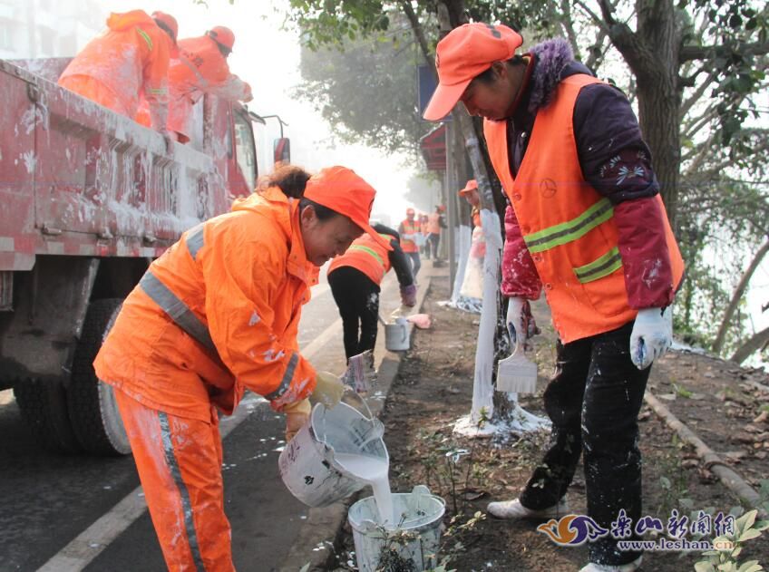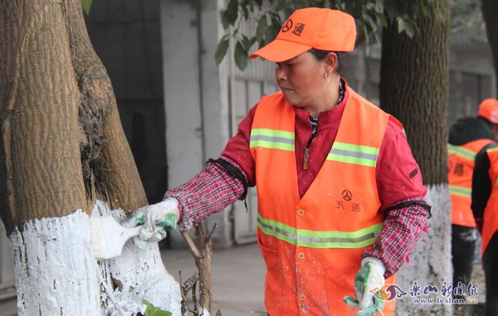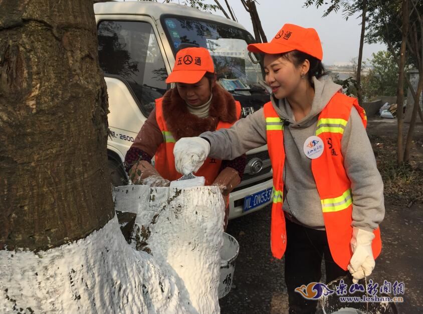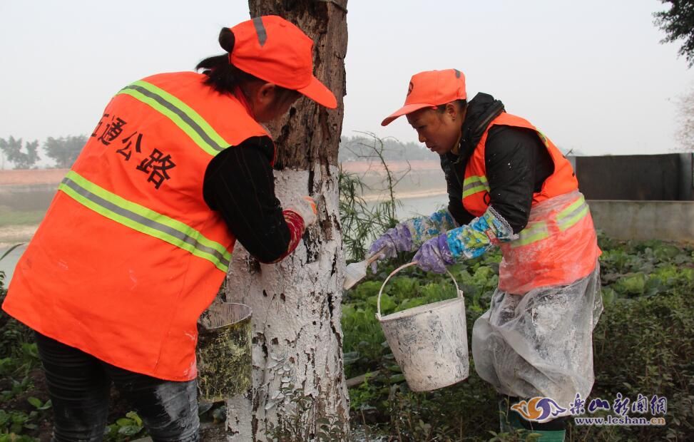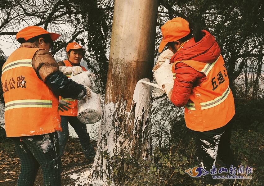 直播当天,是“娘子军”工作普通的一天。她们的任务是给路道两旁的树木刷上石灰粉,达到驱虫防冻的效果。但道路两旁树木多达3000多颗,他们要一棵棵“劳作”。