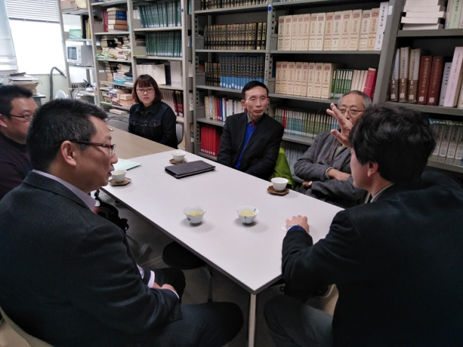 访问中,四川郭沫若研究中心主任廖久明一行调研了日本郭沫若研究会事务局主办的《郭沫若研究会报》,调研了郭沫若留学日本九州大学旧址的医学部、中央图书馆和附属图书馆医学分馆,在相关人员的详细介绍下,深入了解了郭沫若在九州大学留学期间的生活学习情况,瞻仰了郭沫若留下的大量墨宝和文学作品。