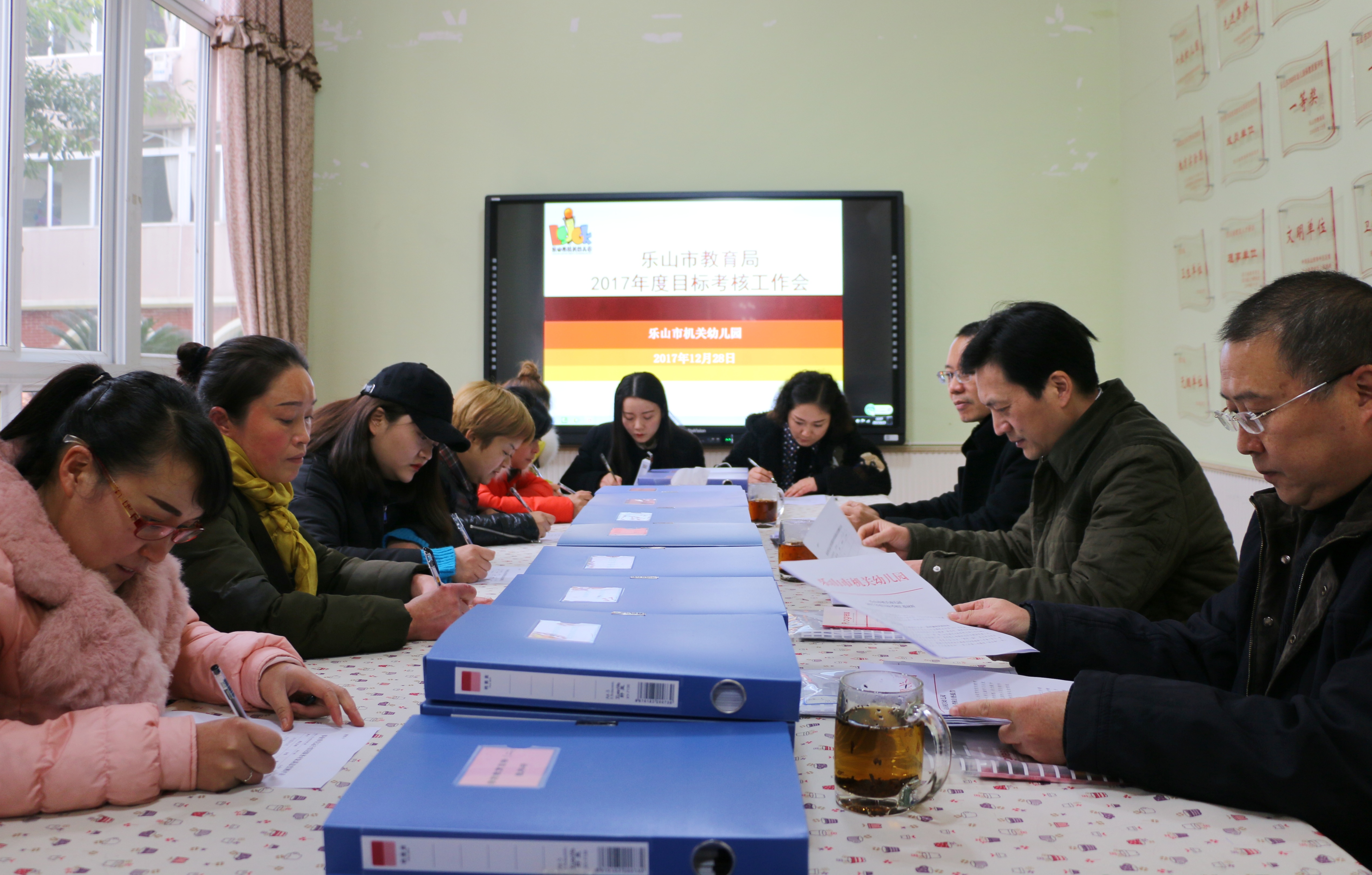 2017年12月28日,乐山市教育局目标管理第五考评组在市教育局副局长梁开禹的率队下,走进市机关幼儿园,开展2017年度目标考评工作。