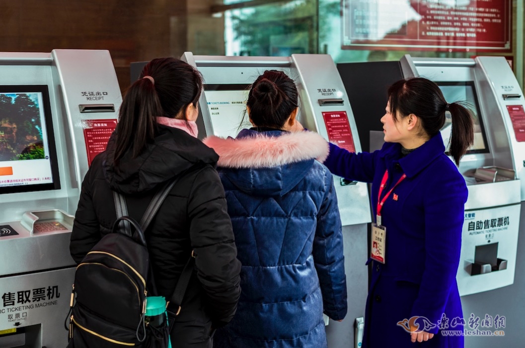 据了解,由于乐山大佛景区北门广场临时补票点处于交通要道旁,为确保景区旅游市场的规范和游客安全,从2017年12月10日起,北门广场临时补票点关闭。关闭北门售票点后,更多游客选择网络购票,或使用手机微信和支付宝在自助售票机上快速买票,从而很少再为买票排队。而对于没有开通手机支付的游客,景区工作人员用自己的手机帮助游客购票,这种贴心的服务温情满满。