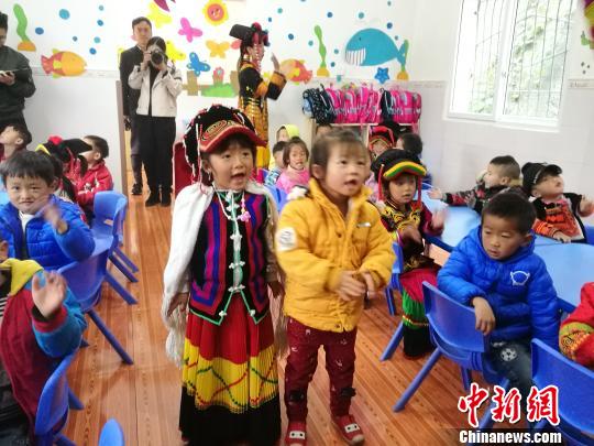 图为峨边彝族自治县白杨乡瓦洛村村幼(阿依园)正在上课的小朋友。 杨珺 摄