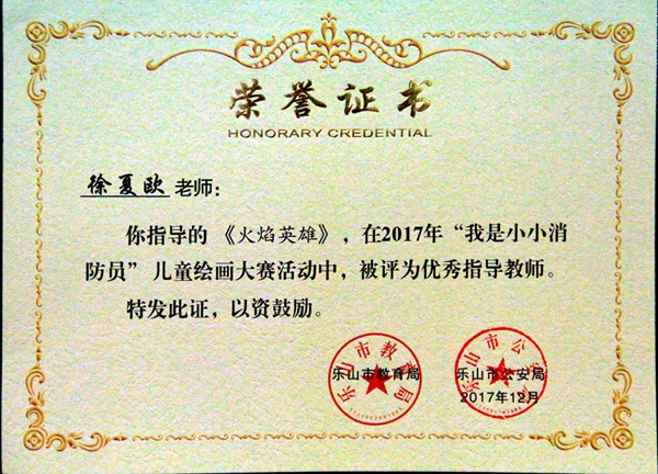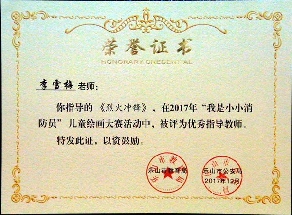 我校教师徐夏欧、李雪梅在2017年“我是小小消防员”儿童绘画大赛活动中,被评为优秀指导教师。