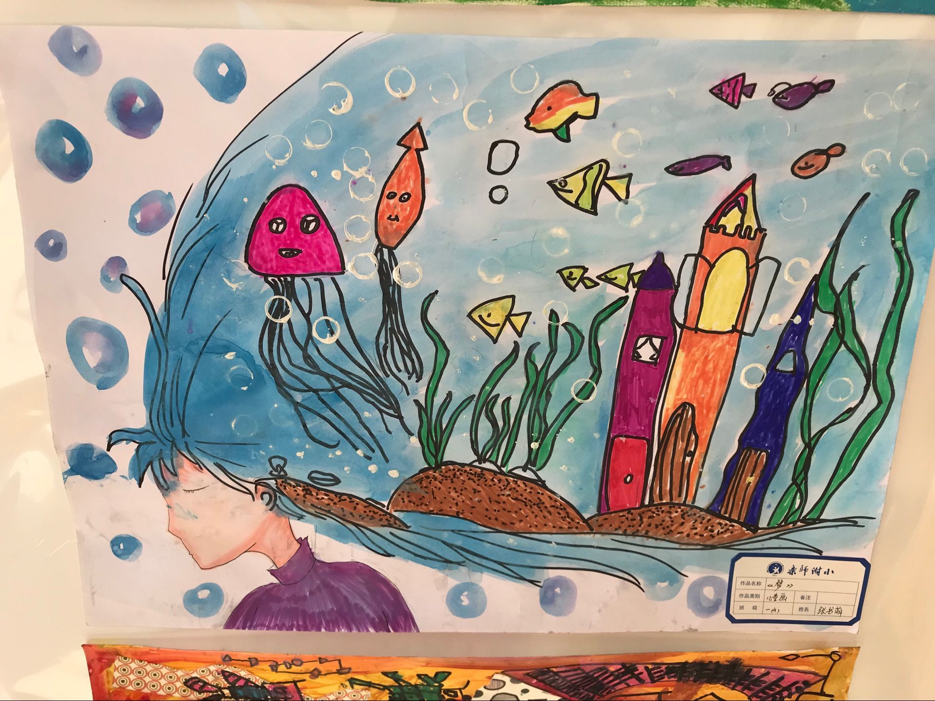 前期,当学校发出了在全校开展“2017年迎春书画展评”活动的通知后,孩子们激动得跳了起来,兴奋地说到:“我们一定认真准备”。果然,两个星期后,孩子们纷纷带着自己的书画作品来到班级。你瞧,那《我的母校》《和太阳赛跑》《梦》《机器人世界》《彩蝶飞舞》等作品,虽然十分稚气,但确也构思非常巧妙,着色十分鲜明,图像栩栩如生,意境非常丰富,想象出人意料,充满童真童趣。在这一幅又一幅的作品中,我们确实感受到每一个孩子的心中,都藏着一个美丽的艺术梦……