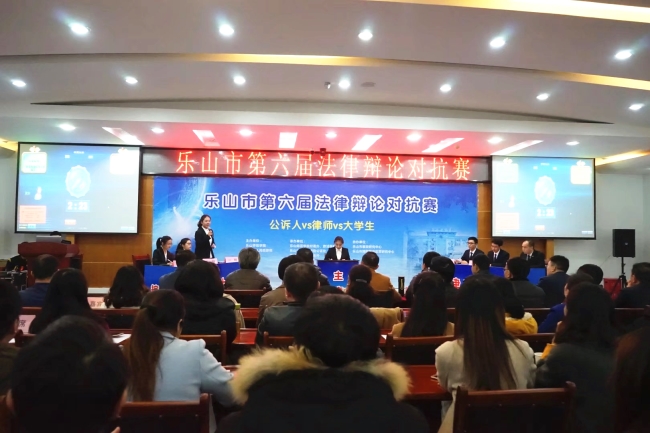 为进一步加强高校与地方检察院、律师事务所全面合作,提高公诉人、律师和法学专业大学生的法律专业化水平,构建良性诉辩关系。12月7日下午,由乐山师范学院和乐山市人民检察院主办的乐山市第六届法律辩论对抗赛在乐山师范学院沫若图书馆学术报告厅举行。